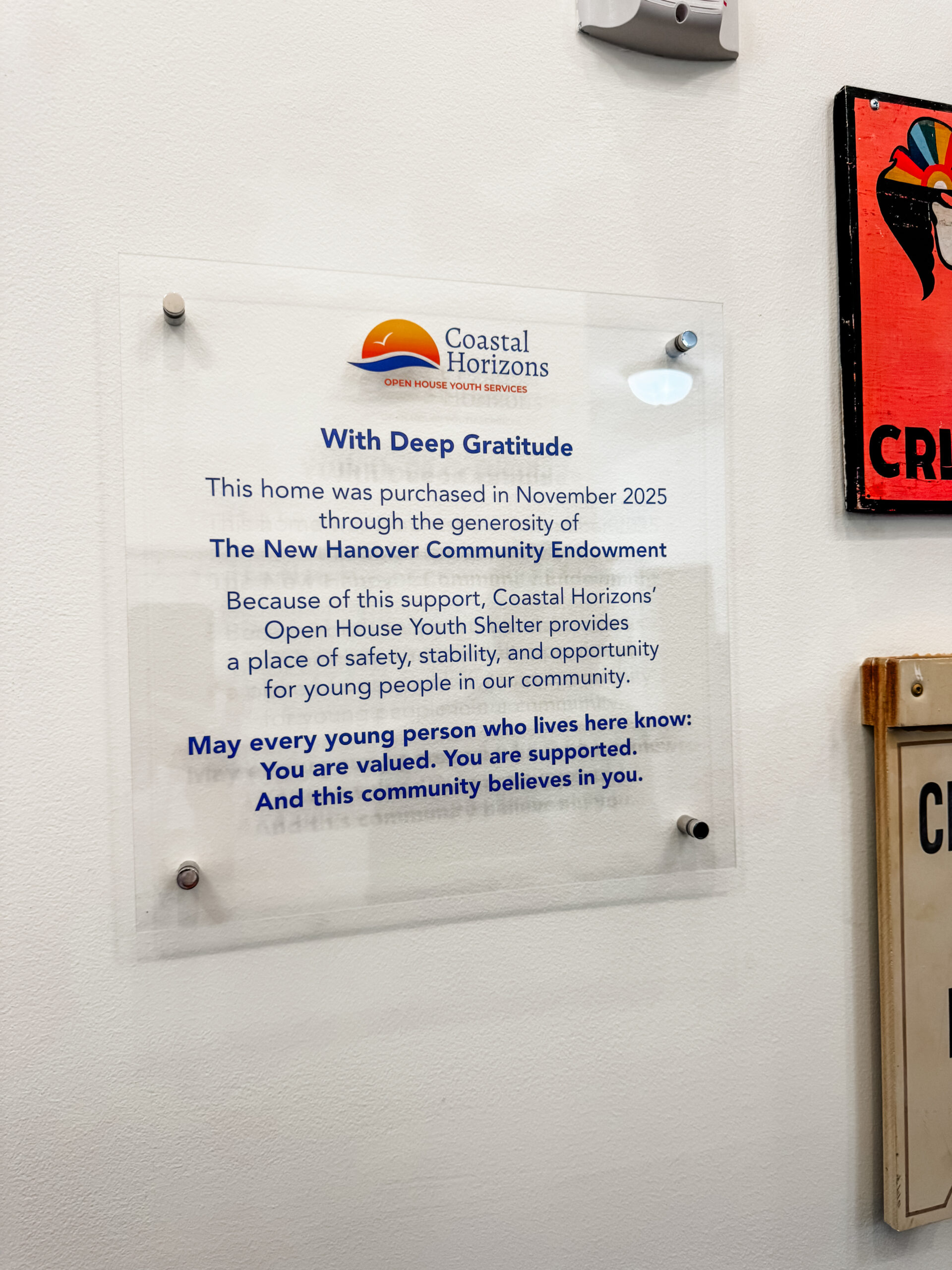 The impact of this project reaches beyond one building. With the new youth shelter open, Coastal Horizons can dedicate additional space on its main campus to expanded adult services, strengthening the local safety net for residents of all ages. Coastal Horizons works in close partnership with community-based teams and coalitions, including the New Hanover County Community Child Protection Team, Child Abuse Prevention Coalition, Community Crisis Response Team, Tri-County Homeless Interagency Council, and the Continuum of Care Coordinated Entry System. The free programming is supported through a diverse mix of funding sources and partners, including the City of Wilmington, New Hanover County, United Way of the Cape Fear Area, Federal Emergency Management Assistance, the North Carolina Department of Health and Human Services, the North Carolina Department of Public Safety, the Administration of Children and Families-Family and Youth Services Bureau, foster care and Child/Adolescent Crisis Respite reimbursements from the Department of Social Services, local foundations and charitable donations.