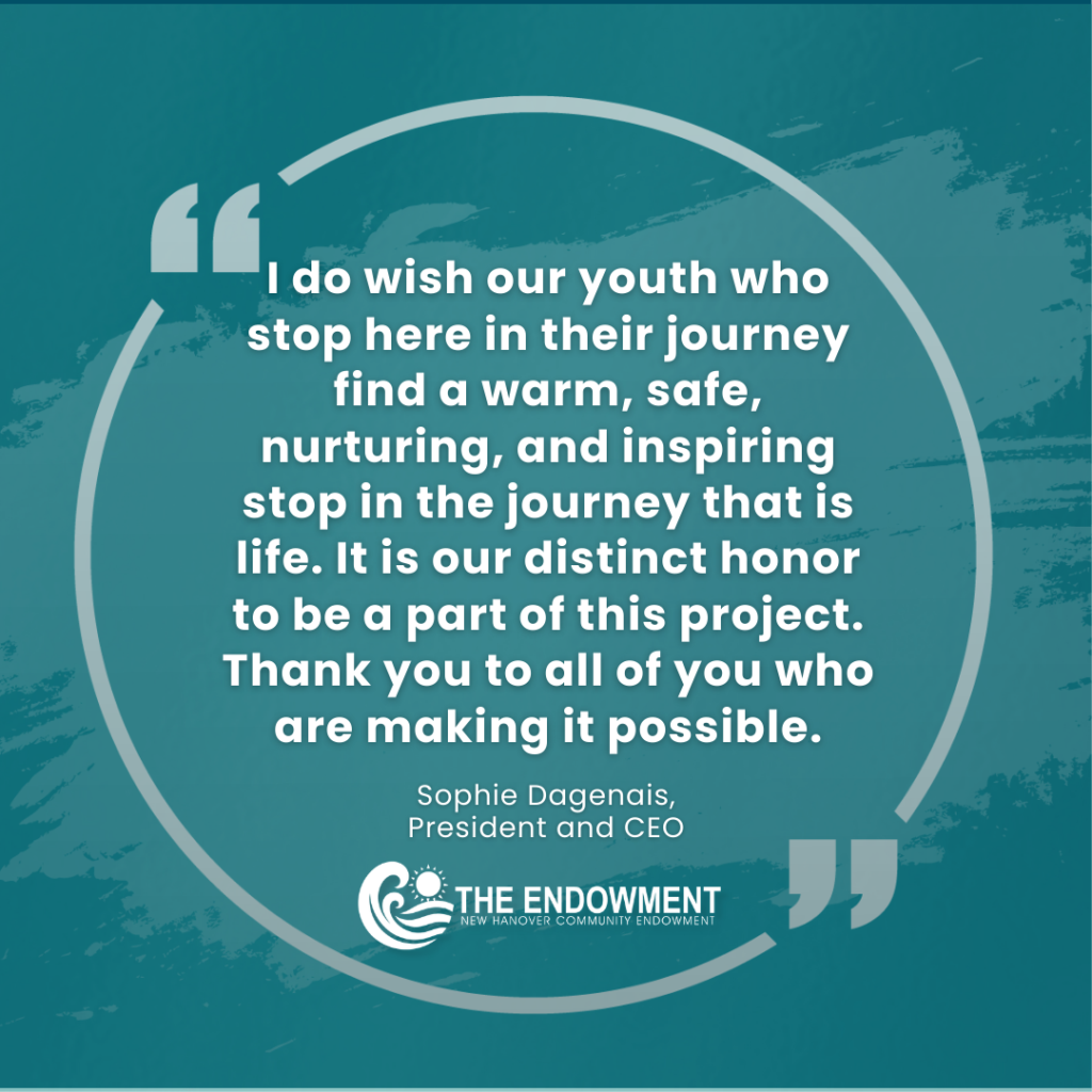 This project aligns with The Endowment’s pillars of Social and Health Equity and Community Safety, and it represents what is possible when local partners come together around shared goals. By investing in Open House Youth Shelter, our neighborhoods become safer, families become stronger, futures become brighter for young people across New Hanover County.