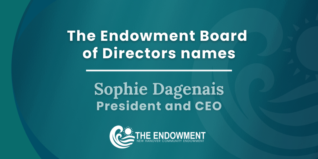 WILMINGTON, N.C. The Endowment’s Board of Directors is pleased to announce the appointment of Sophie Dagenais as President and Chief Executive Officer. Dagenais has served as Interim President and CEO, providing continuity of leadership and supporting the organization’s mission and strategic priorities.